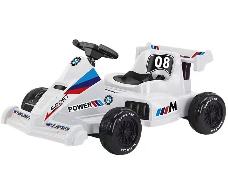 •               Realistic car model;      Cool lights;       Early education music;        High backrest; Full body underguard;       One-button start;         Safety belt